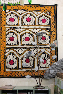This wall hanging is actually a Suzani prayer rug. Would look great over a bed, or on a table, or just about anywhere.